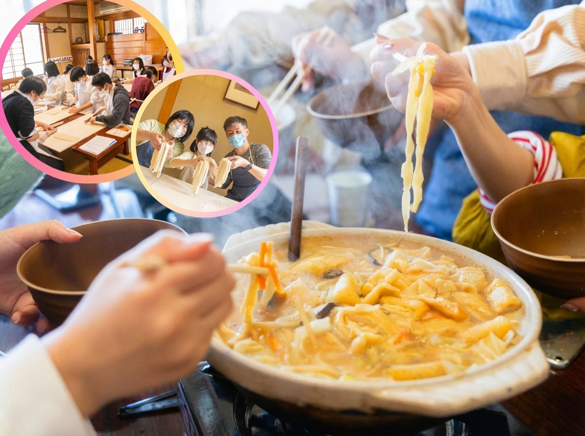 猫カフェ向かいの姉妹店舗では吉田のうどんランチの営業を行っています。猫カフェ利用の前後にお立ち寄りいただけます。