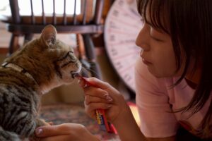 猫と遊ぶとご飯無料!