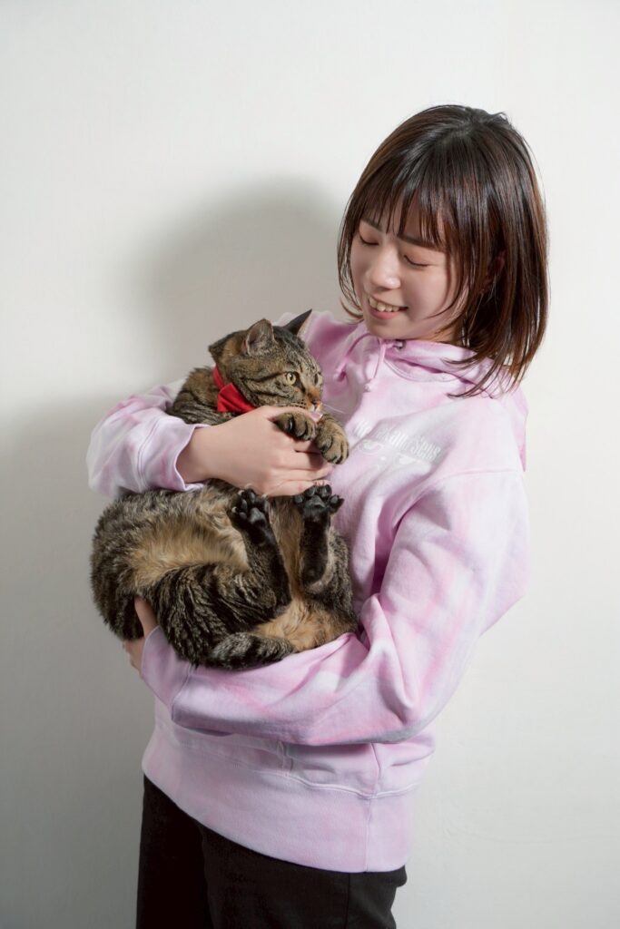 山梨県笛吹市出身。年齢不詳で推定10歳から15歳のおばあちゃん。大けがしているところを保護され、療養ののちにアトリエへ。基本的に寝ているが気分で膝に乗って甘えてくる。